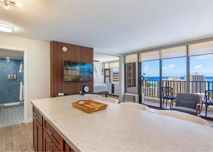 The 56 m² New! Modern Remodeled Condo, Walk To Waikiki Beach, Oceanview, Free Parking, Ac Honolulu is located just a 14-minute walk from the outdoor Royal Hawaiian Center and offers Wi-Fi for either business or leisure. Offering a short way from Honolulu Petting Zoo, this apartment provides guests with a terrace with seaside views.